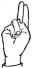 На ћирилици написано ДАВИД ДАНГИЋ састоји се из 11 слова [?]. Исписано ћириличном једноручном азбуком за глувонеме: